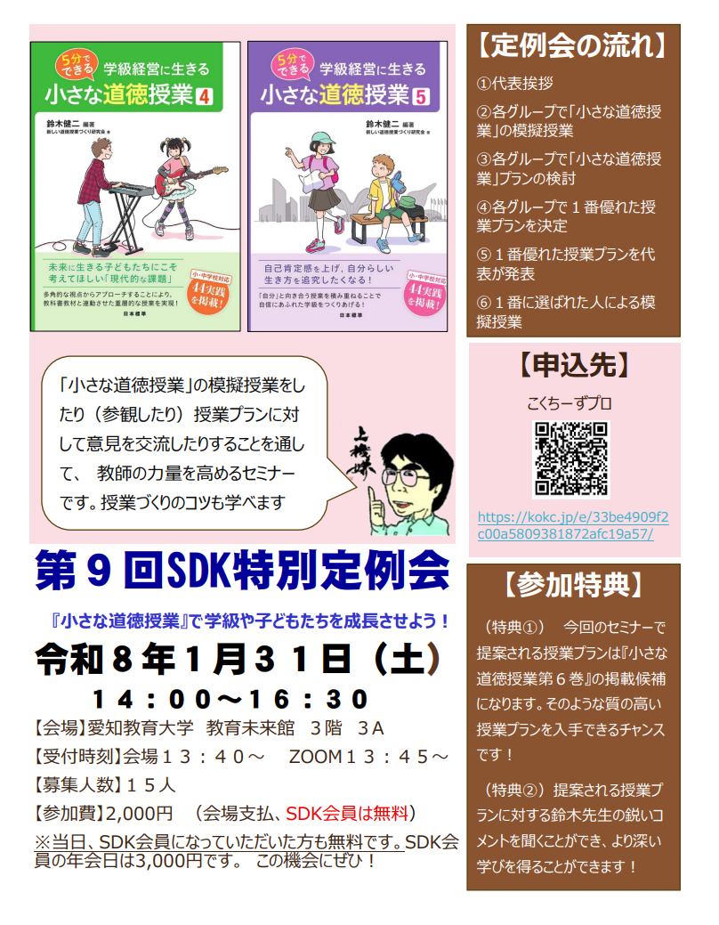 【第9回SDK特別定例会】「小さな道徳授業」を学んで質の高い学級経営を目指そう!